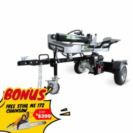 The BWM LSD50HK log splitter comes with everything you need. It is powered by a genuine commercial Honda GX390 OHV engine (Honda Australia Approved), with a key start function, and built to perform in demanding applications. Featuring a 2-stage, (16GPM/3850psi) pump for maximum speed without loss of pressure and is designed to split in the horizontal position. The BWM LSD50HK log splitter is fitted with a hydraulic lifting table to ease your back and arms as well as an 8″ jockey wheel for smooth transportation.